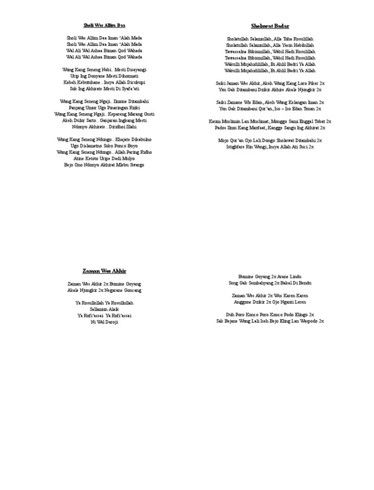 sholli wasallim daa iman alah mada sholli wasallim daa iman alah mada wal ali wal ashaa biman qod wahhada wal ali wal ashaa biman qod wahhada wong kang seneng nabi mesti di sayangi urep ing ndoyane mesti di hormati kabeh kebutuhane insya allah dicukupi sok ing akhirate mesti disyafa'ati sholli wasallim daa iman alah mada sholli wasallim daa. Allahumma sholli ala muhammad ya rabbi sholli alaihi wasalim. Aktifkan dzikir nur qasam itu berada di jantung nur muhammad itu di tulang sulbi dan nur diri itu di dalam otak ada minyak di dalam minyak ada bonak di dalam bonak itu lah nur diri dzikir, amalan mendatangkan uang dngan mudah, arti nama abd al ishaqi, ceramah agama kh akhmad asroti bab doa ijabah, doa agar orang yang kita cintai kembali kepada kita, donload istimewa versi jaranan, download. Academia.edu is a platform for academics to share research papers. sholli wasallim daa iman alah mada sholli wasallim daa iman alah mada wal ali wal ashaa biman qod wah hada wal ali wal ashaa biman qod.